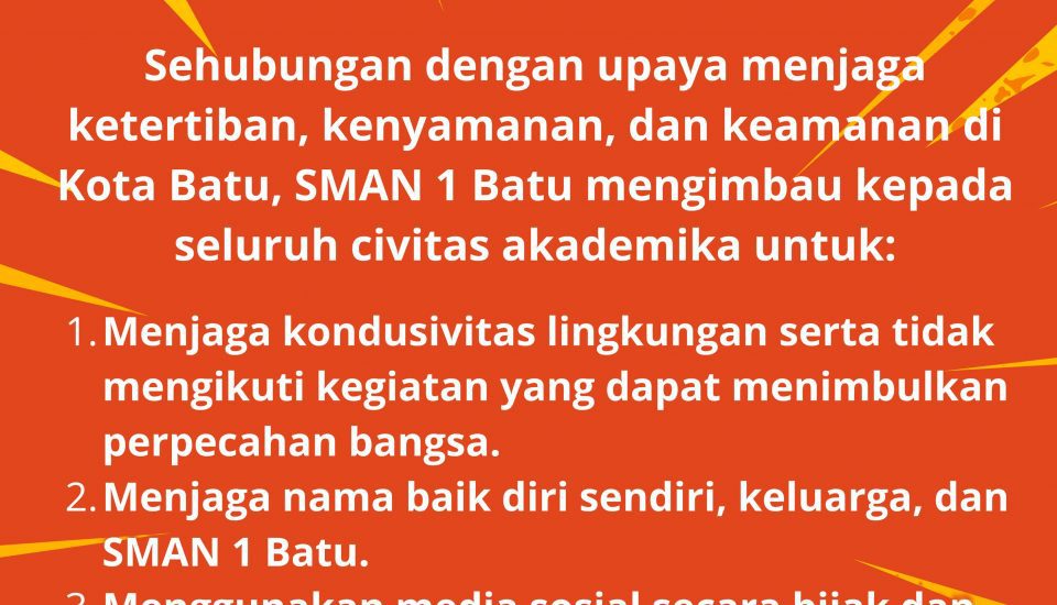 Seleksi Penerimaan Murid Baru (SPMB) SMAN 1 Batu Tahun Ajaran 2025/2026 Klik Disini Untuk JUKNIS SPMB JATIM 2025