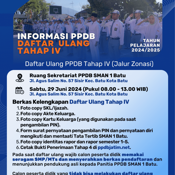 Informasi Penerimaan Peserta Didik Baru (PPDB) SMAN 1 Batu Tahun Pelajaran 2024/2025