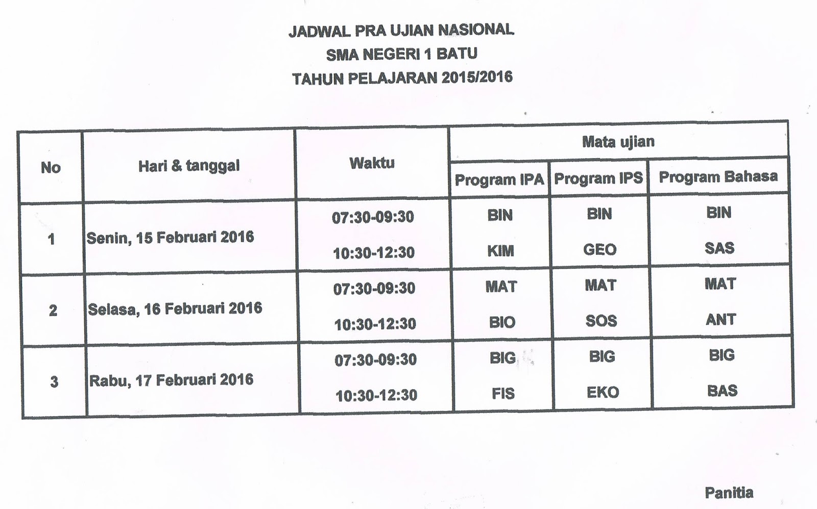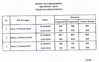 DIBERITAHUKAN KEPADA SEMUA PESERTA DIDIK DAN ORANG TUA WALI KELAS XII , BERIKUT JADWAL TERBARU PRA UN 2016